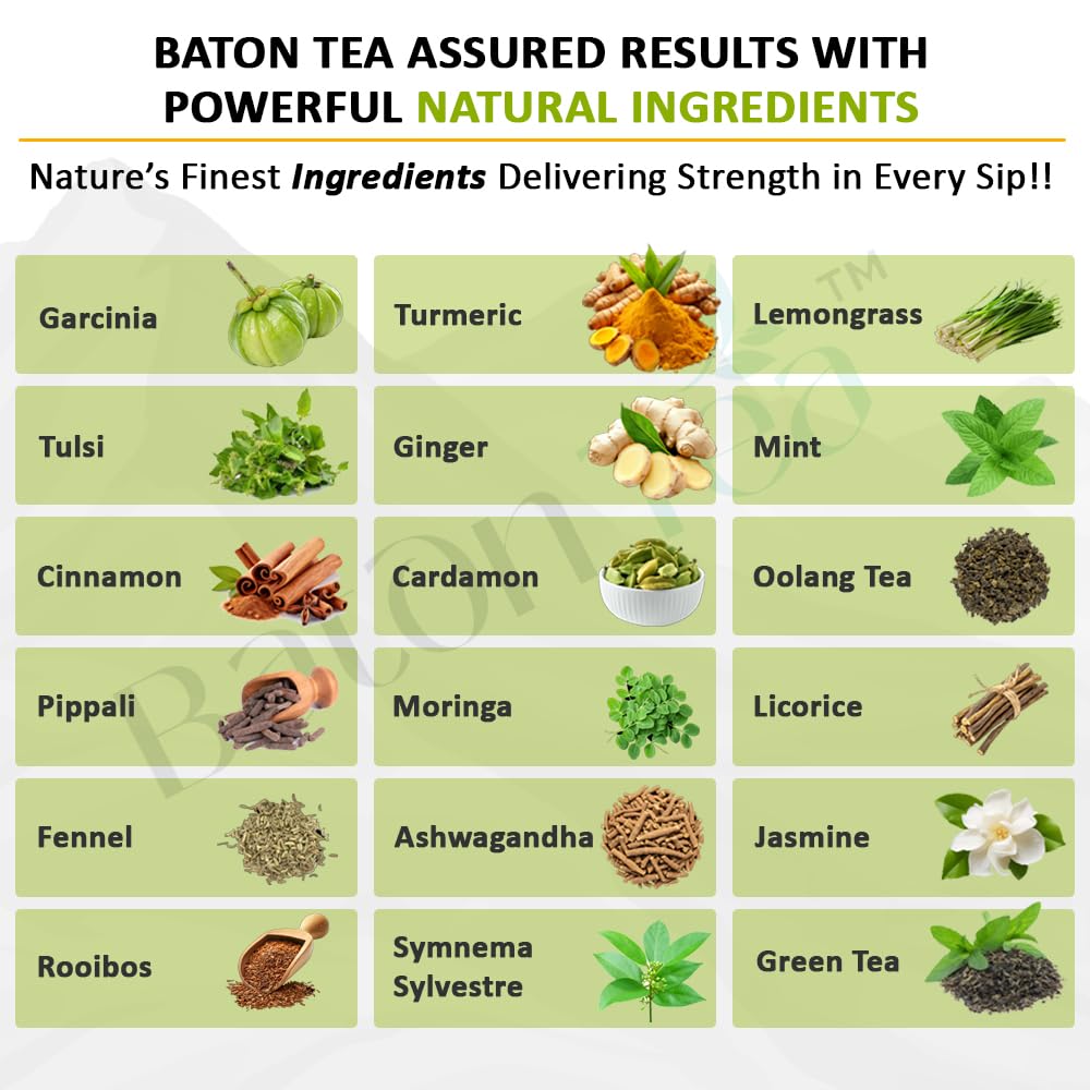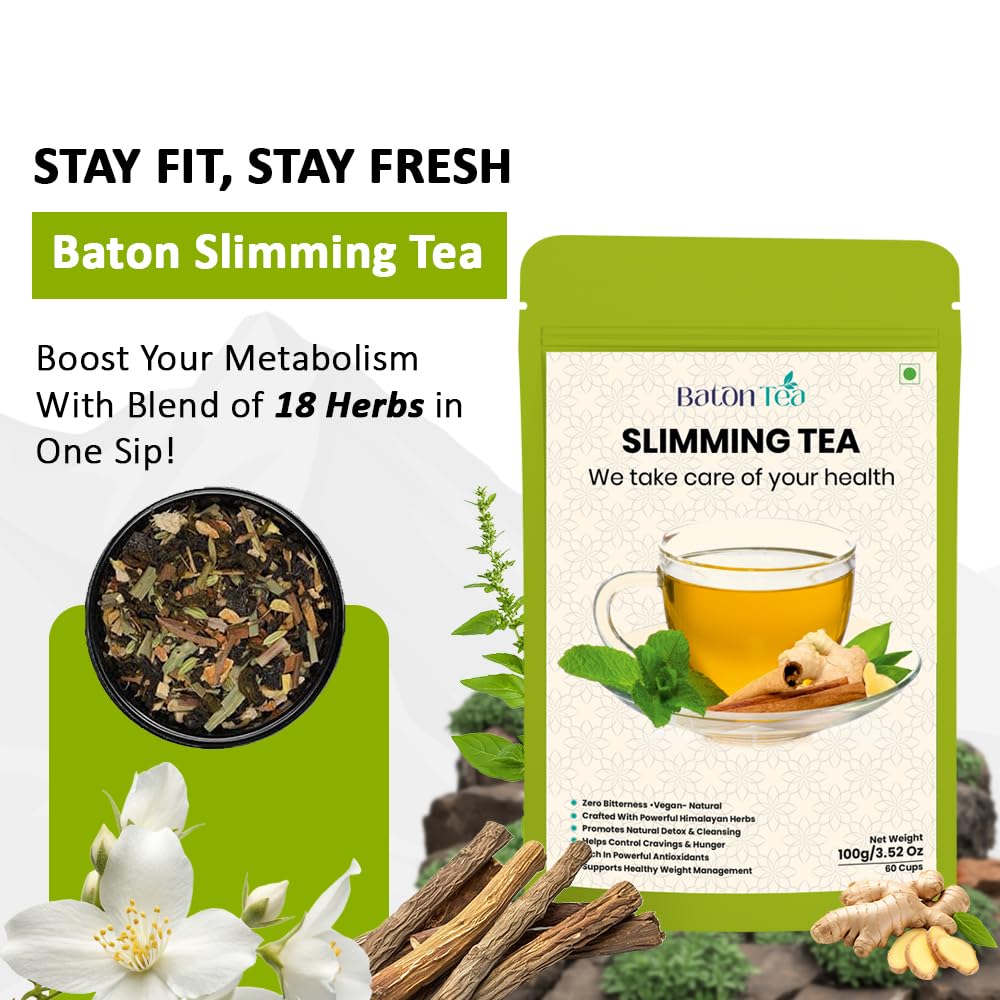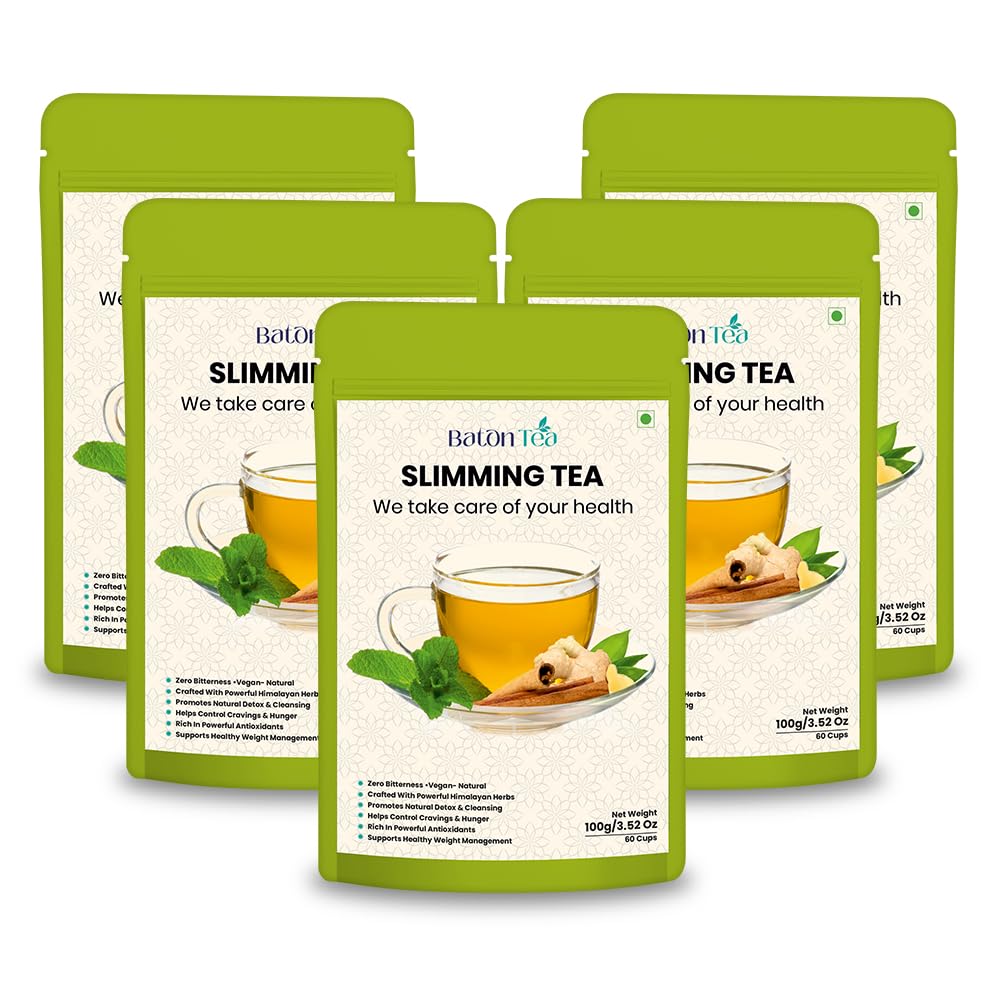 Baton Slimming Herbal Green Tea | Loose Leaf Detox Blend with Garcinia Cambogia, Herbs & Spices | Supports Weight Management & Digestion | Zero Sugar | Non-Bitter | 100g (Pack 5)