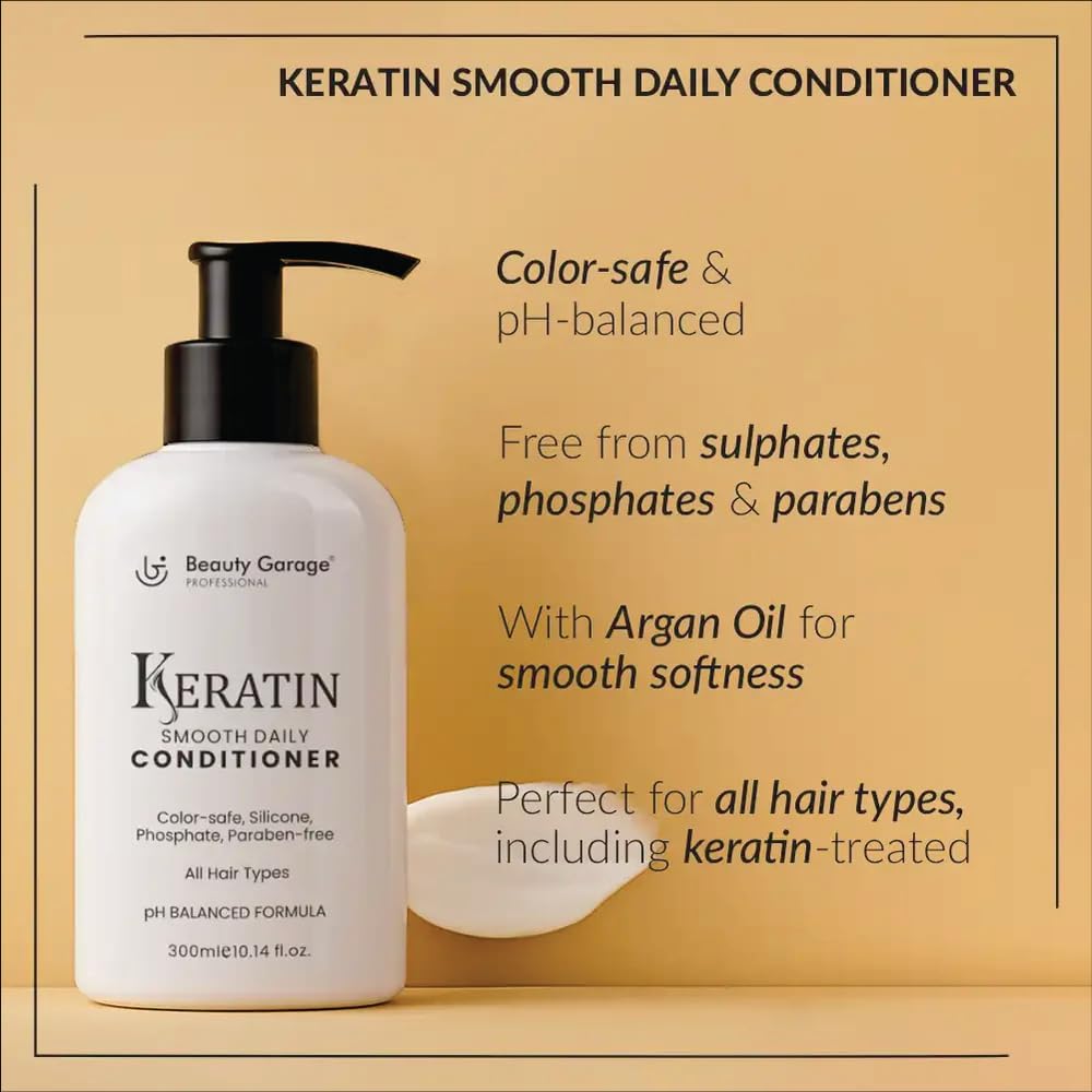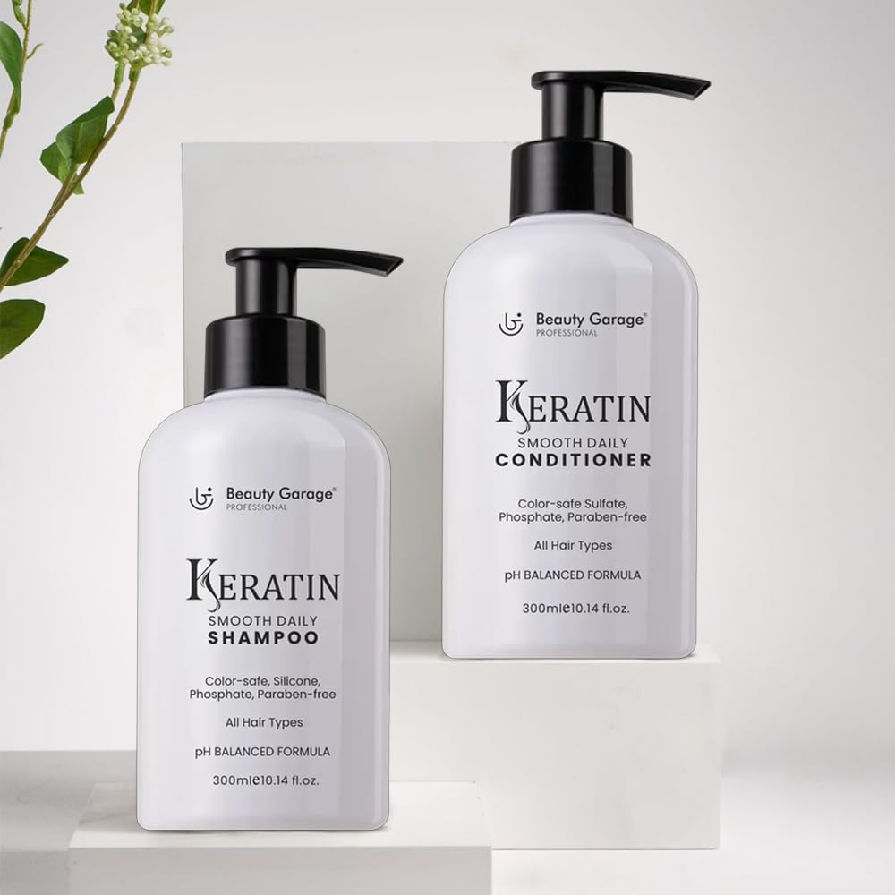 Beauty Garage Keratin Shampoo and Conditioner Combo | 300ml Each | Keratin Hair Care Kit for Women and Men | Sulphate & Phosphate Free | Repairs Damage & Reduces Frizz