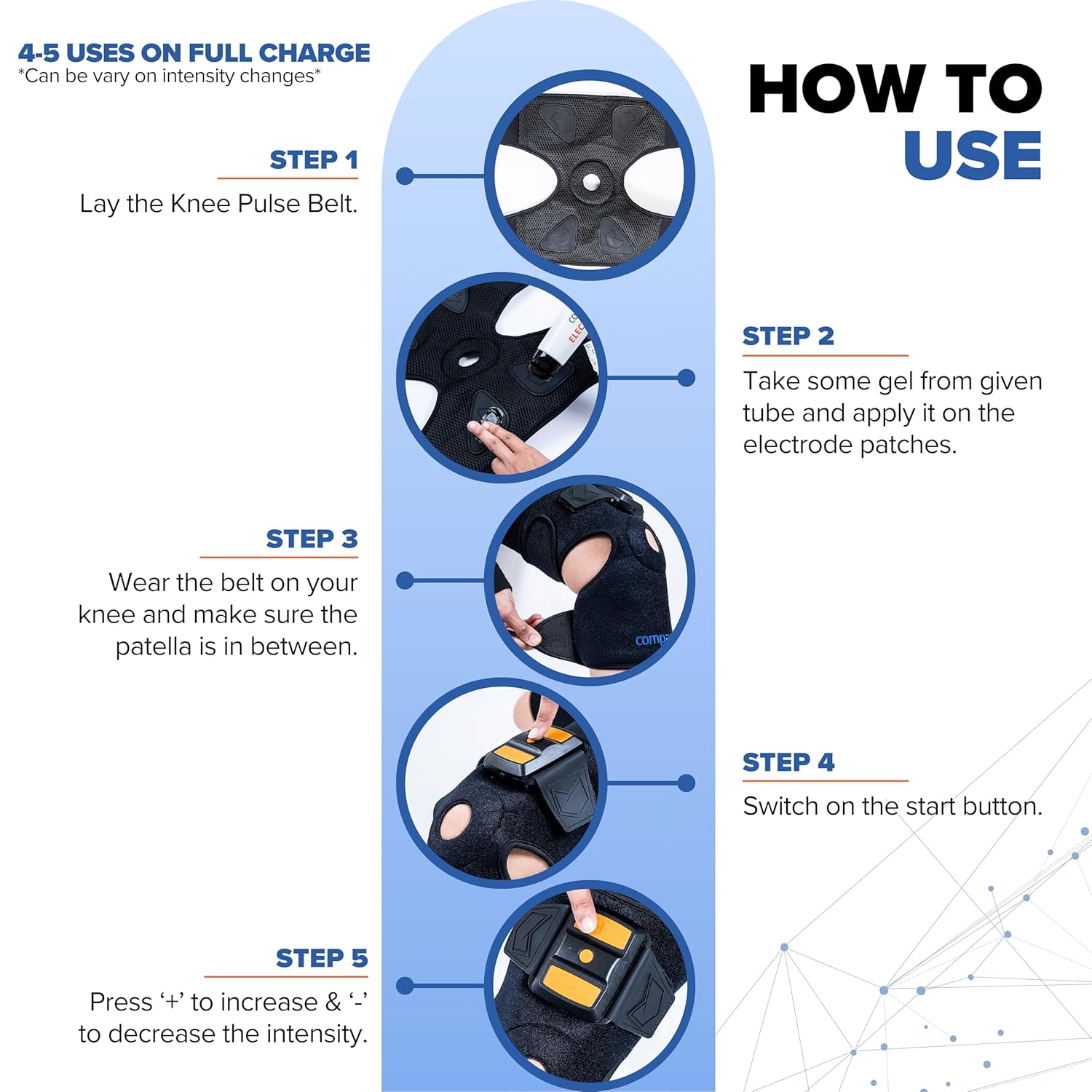 COMPANIO Cordless Knee Massager with TENS for Men & Women – 30 Adjustable Intensity Levels, 3 Modes – Relief from Knee Pain, Joint Pain, Swelling & Arthritis – Rechargeable, Portable – Muscle/Nerve Stimulator with Electrode Gel – No Side Effects – Physiotherapy, Massage & Cramps Therapy
