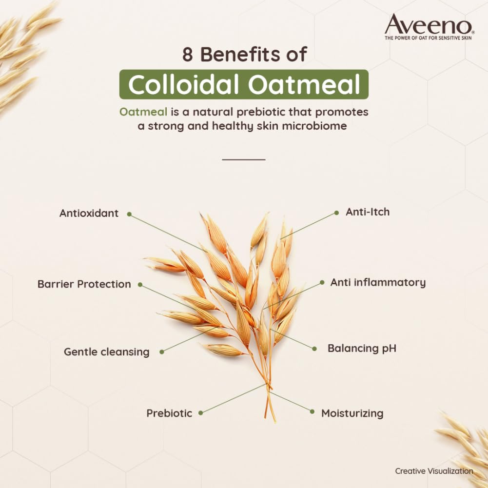 Aveeno Daily Moisturizing Lotion is a clinically proven, fragrance-free body lotion that provides 24-hour moisturization for normal to dry skin. Enriched with natural oat formula, it helps restore the skin’s moisture barrier, maintain pH balance, and improve skin texture from day one—without leaving a greasy feel.
