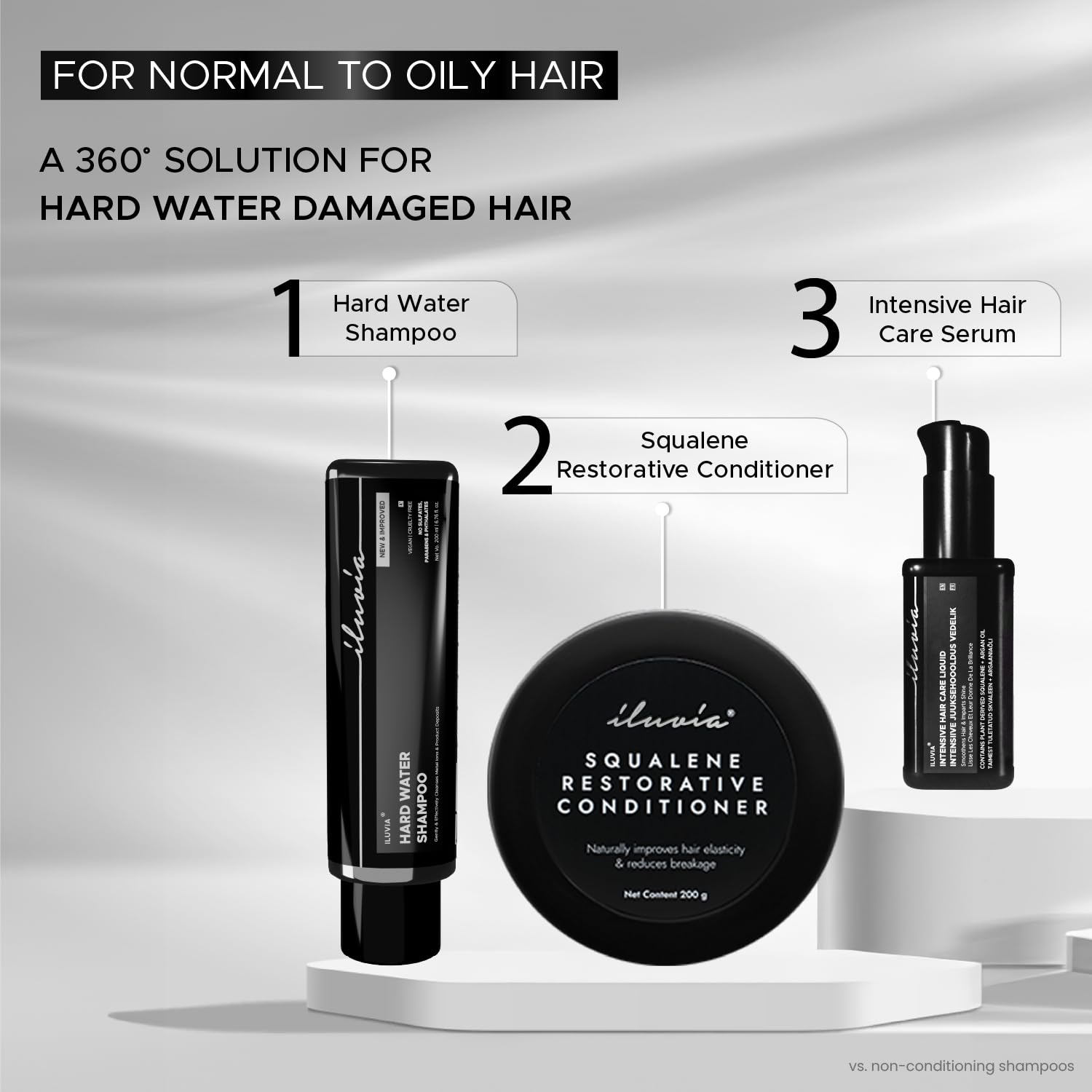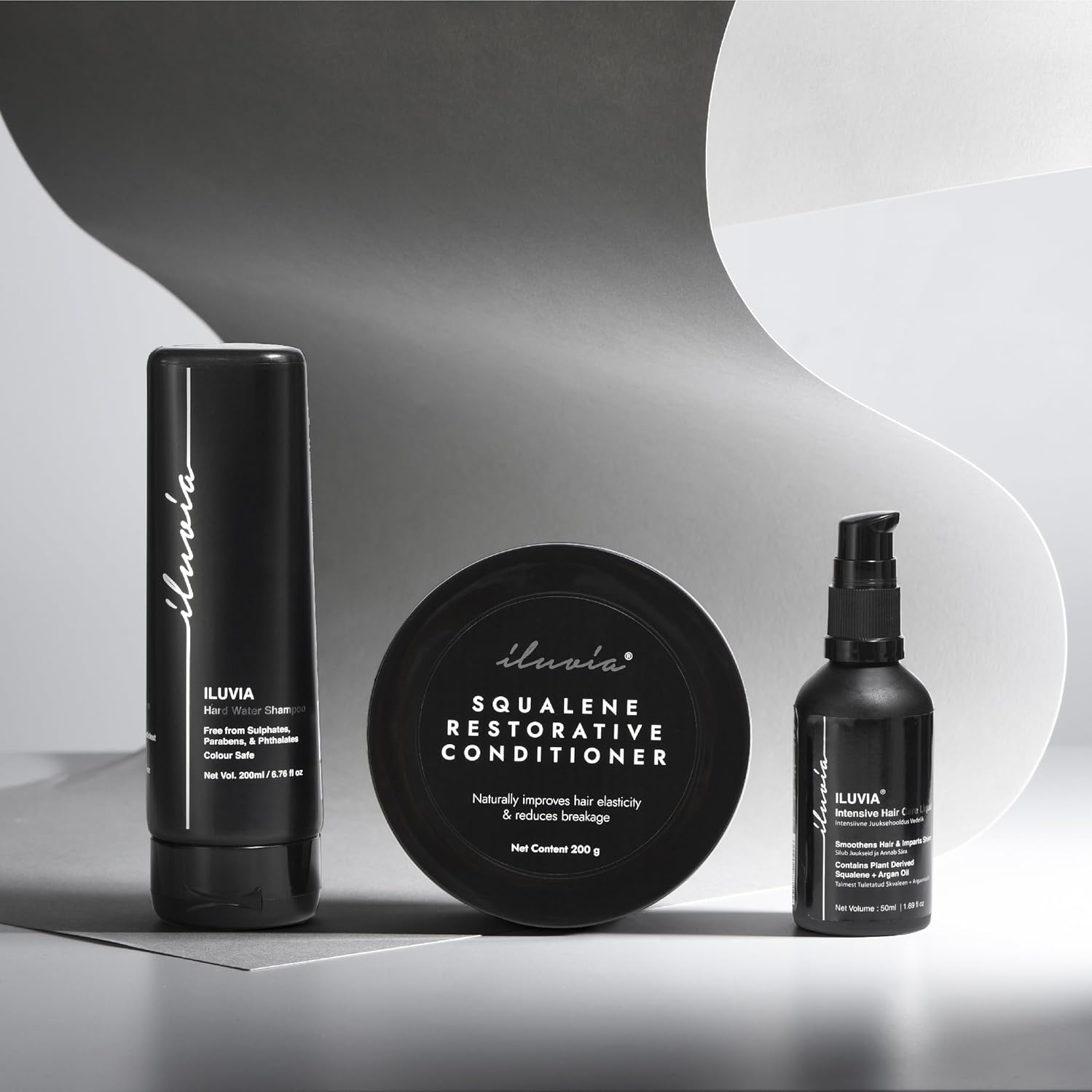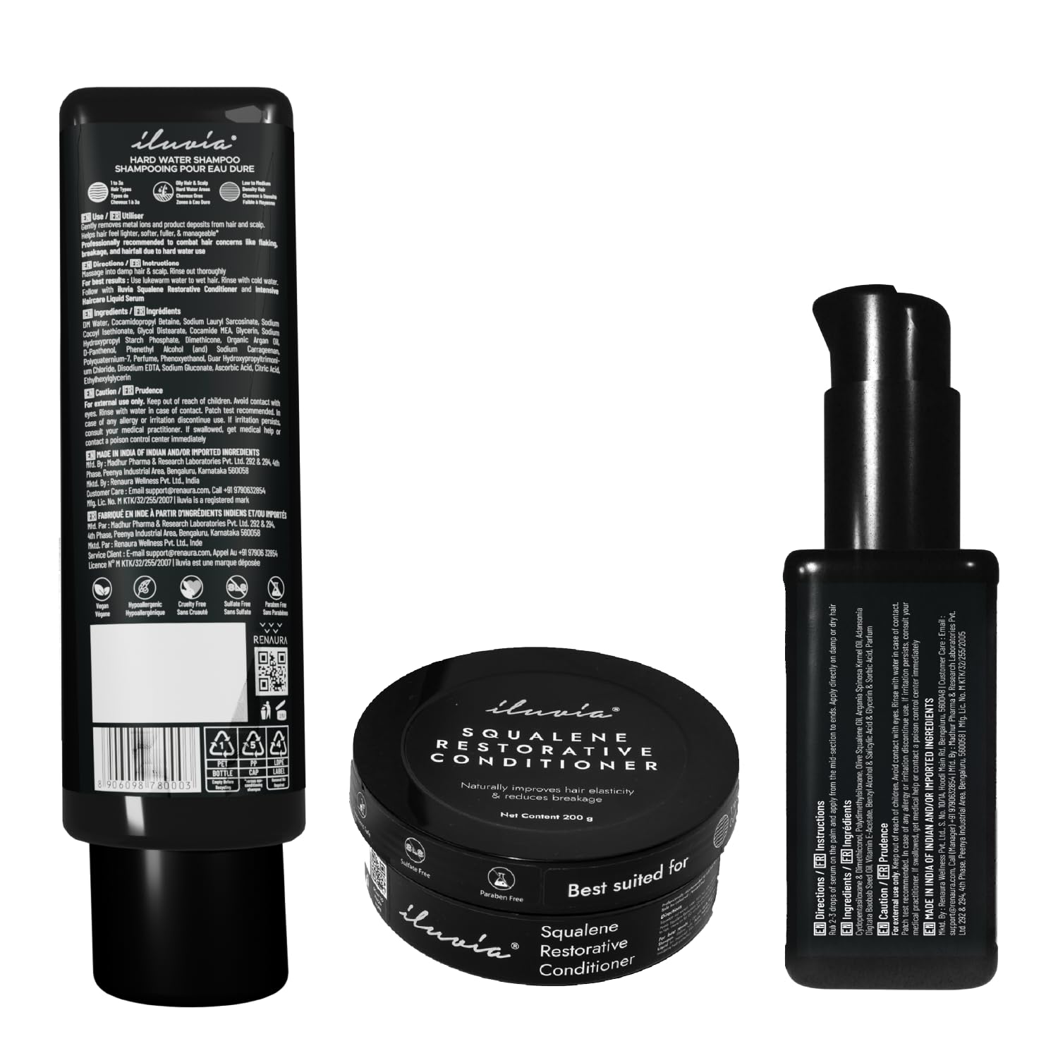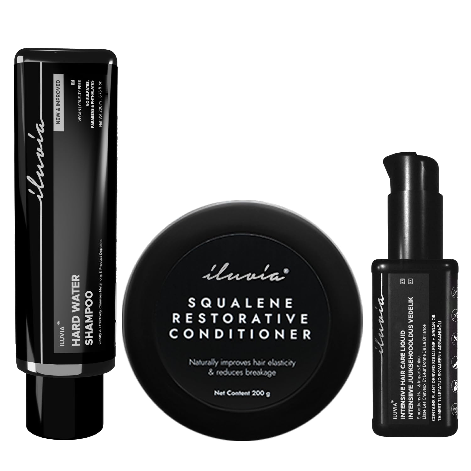 iluvia Complete Professional System- iluvia Hard Water Shampoo 200 Ml & Squalene Restorative Conditioner 200g & Intensive Hair Care Liquid 50ml