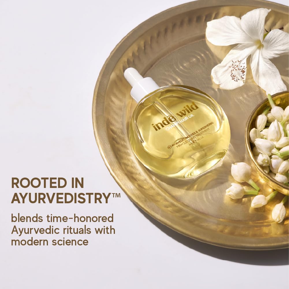 indē wild Champi Hair Oil with Rosemary Oil, Brahmi, Amla, and Bhringraj | Ayurvedic Hair Growth Oil for Dandruff, Hairfall, & Thicker, Fuller Hair | 16+ Ayurvedic Actives | Calming Fragrance